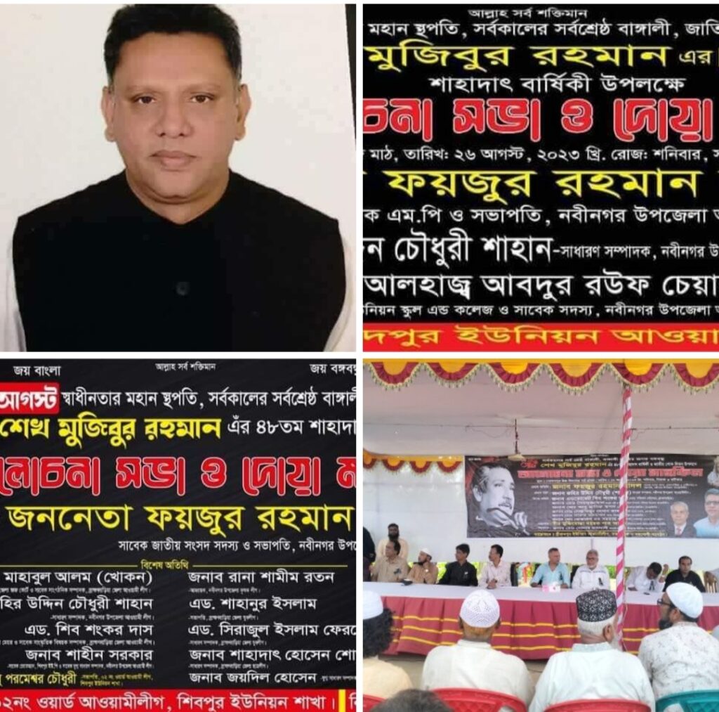 ২৬ আগস্ট নবীনগরের দক্ষিণ এলাকায় শোক দিবসের আলোচনা সভা ও দোয়া মাহফিলে প্রধান অতিথি হিসেবে যোগদান করবেন ফয়জুর রহমান বাদল