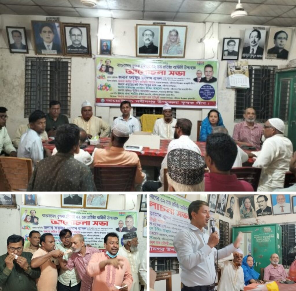 মোঃশাহ আলম খন্দকারঃ আজ ১৯শে এপ্রিল রোজ শুক্রবার নবীনগর উপজেলা কৃষকলীগের উদ্যোগে উপজেলা কার্যালয়ে বাংলাদেশ কৃষকলীগের ৫২ তম প্রতিষ্ঠা বার্ষিকী পালিত হয়। নবীনগর উপজেলা কৃষকলীগের সভাপতি রানা শামীম রতন এর সভাপতিত্বে, উপজেলা কৃষকলীগের সাধারণ সম্পাদক, চট্টগ্রাম বিশ্ববিদ্যালয়ের সাবেক ছাত্রনেতা এডভোকেট এনামুল হক চৌধুরীর পরিচালনায় বক্তব্য রাখেন শাহ রকিব উদ্দিন, নবীনগর উপজেলা মহিলা আওয়ামী লীগের আহবায়ক অধ্যাপক নূরুনাহার বেগম, উপজেলা আওয়ামী যুবলীগ সাধারণ সম্পাদক আশরাফুল ইসলাম রিপন,সাবেক ডিজিএস রকিব উদ্দিন নয়ন, সাবেক ছাত্রনেতা ওমর ফারুক, মোহাম্মদ খলিলুর রহমান খলিল,আরিফুল ইসলাম রাজিব, মাহমুদা বেগম,শামসুল হক মাষ্টার, নূরুল হক,এমদাদুল হক রুবেল,কবির মেম্বার, মিজানুর রহমান, তোফায়েল আহমেদ, শাহ আলম, ইকবাল হোসেন,ডাঃ বুলবুল, ডাঃ নূর,জিলানী,লুৎফর নাহার প্রমূখ।