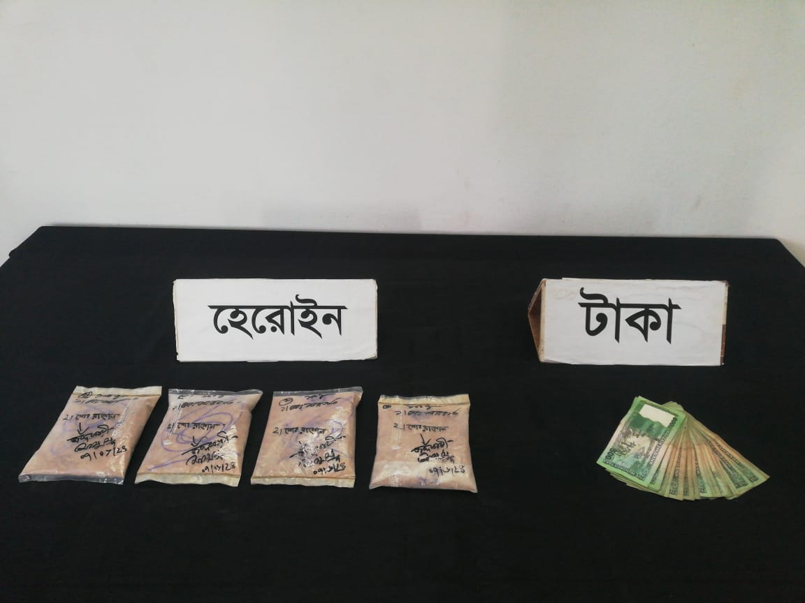 র্যাব-৫, রাজশাহীর সিপিএসসি, মোল্লাপাড়া ক্যাম্পের একটি চৌকস আভিযানিক দল গোয়েন্দা তথ্যের ভিত্তিতে জানতে পারে যে, চাঁপাইনবাবগঞ্জ জেলার সদর থানাধীন কোদালকাটি ভাড়পাড়া গ্রামস্থ সীমান্তবর্তী দূর্গম পদ্মার চরে কতিপয় মাদক ব্যবসায়ী নিজ বসতবাড়িতে অবৈধ মাদকদ্রব্য মজুদ রেখে বিক্রয়ের উদ্দেশ্যে অবস্থান করছে। পরবর্তীতে র্যা বের গোয়েন্দা দল আসামীদের গতিবিধি পর্যবেক্ষন করে। অদ্য ০৭ জুন ২০২৪ তারিখে একটি চৌকস আভিযানিক দল উক্ত ঘটনাস্থলে অভিযান পরিচালনা করে ধৃত আসামীর নিকট হতে ৪০০ গ্রাম অবৈধ মাদকদ্রব্য হেরোইন এবং নগদ ১৩,০০০/-টাকা উদ্ধার করা হয় এবং অপর আসামী মোঃ রফিকুল ইসলাম পিতা-মৃত তৈয়ব আলী মন্ডল বর্তমান সাং-কোদালকাটি ভাড়পাড়া, পূর্ব সাং-কোদালকাটি গাইনাপাড়া (যে পাড়াটি বর্তমানে পদ্মা নদী ভাঙ্গনে বিলীন), থানা-চাঁপাইনবাবগঞ্জ সদর, জেলা-চাঁপাইনবাবগঞ্জ অজ্ঞাত স্থানে পালিয়ে যায়।