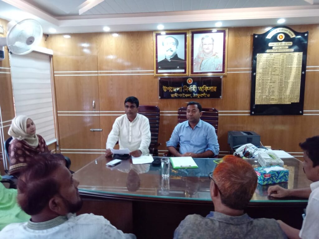 ইউএনও রকিবুল হাসানের সভাপতিত্বে সভায় উপস্থিত ছিলেন- উপজেলা চেয়ারম্যান আহাম্মেদ হোসেন বিপ্লব, সহকারী কমিশনার (ভূমি) আর্নিকা আক্তার, পৌর আ’লীগ সভাপতি জাহাঙ্গীর আলম, ইউপি চেয়ারম্যান আবুল হোসেন, আবুল কাশেম ,বীর মুক্তিযোদ্ধা হবিবর রহমান ও সিরাজুল ইসলাম, অধ্যক্ষ মহাদেব বসাক, প্রেসক্লাব (পুরাতন) সভাপতি অধ্যাপক আনোয়ারুল ইসলাম, রাণীশংকৈল প্রেস ক্লাব সাবেক সাধারণ সম্পাদক( সাংবাদিক) একে আজাদ. হুমায়ুন. ও লেমন সরকার প্রমুখ