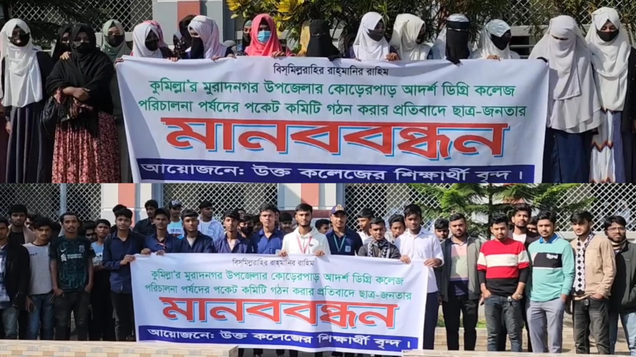 মুরাদনগরে কলেজ পরিচালনা পরিষদে পকেট কমিটি গঠন করায় ছাত্র জনতার মানববন্ধন।