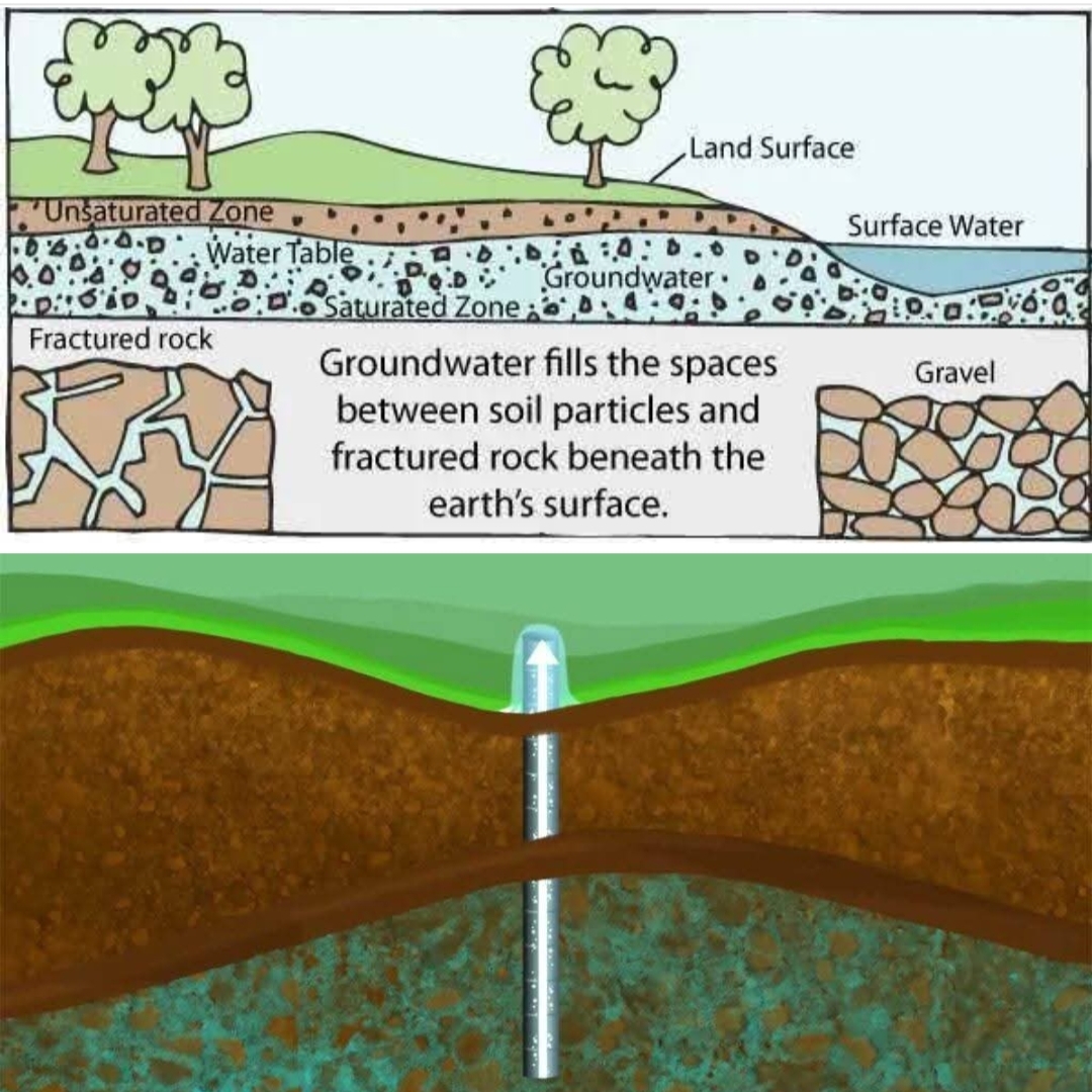 লেখাটা পড়তে পড়তে এই পর্যায়ে এসে আপনার মনে প্রশ্ন জাগতে পারে, অ্যাকুইফারে বালি এবং পলির ফাঁকে থাকা পানি কিভাবে উপরে আসে। মনেকরুন, ভূগর্ভের কোনো একটি স্থানে একটি অ্যাকুইফার রয়েছে এবং অ্যাকুইফারে থাকা পানির লেভেল, অর্থাৎ ওয়াটার টেবিল এই পর্যন্ত। এখানে খেয়াল করুন, পানি কিন্তু বিশাল কোনো ফাঁকা স্থানে অবস্থান করছে না, বরং বালির ফাঁকে ফাঁকে অবস্থান করছে। এখন একটি পাইপ অ্যাকুইফারের গভীরতা পর্যন্ত স্থাপন করা যাক। এই পাইপের ভেতরে দেখুন, পানি জমা রয়েছে এবং সেই পানি ভূগর্ভস্থ পানির লেভেল পর্যন্ত রয়েছে। অর্থাৎ, বালির ফাঁকে ফাঁকে থাকা পানি পাইপের মধ্যে এসে জমা হয়েছে। এখন পাইপের মধ্যে জমা থাকা এই পানি একটি নলকূপের মাধ্যমে বের করে নিয়ে আসা যাক। এখানে খেয়াল করুন, পানি বের করে নিয়ে আসার ফলে যে পরিমাণ পানি কমে যাচ্ছে, তার সাথে সাথেই তা পূর্ণ হয়ে যাচ্ছে। কারণ, পাইপের ভেতরে থাকা পানি বের করে ফেলার কারণে পাইপের ভেতরে নিম্নচাপ তৈরি হয়। অন্যদিকে, পাইপের বাইরে উচ্চচাপ বিরাজ করে। ফলে পাইপের নিচ দিয়ে পানি এসে চাপের অসমতাকে ব্যালেন্স করে। এভাবেই আমরা ভূগর্ভস্থ পানি পেয়ে থাকি।