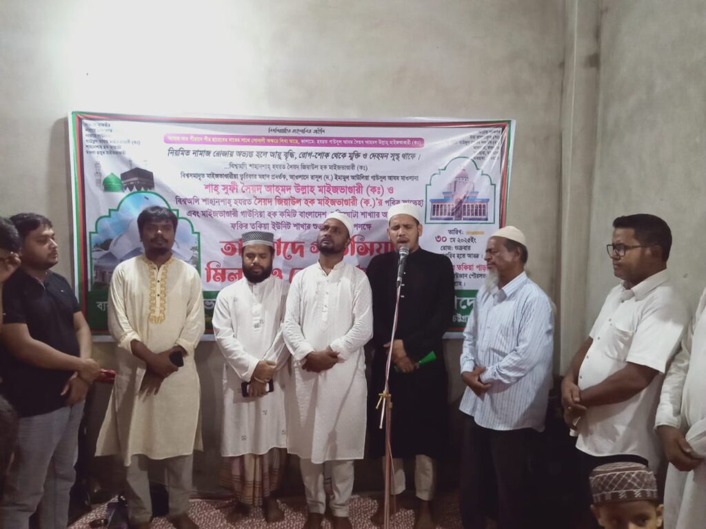 গাউছুল আজম হযরত মওলানা শাহ ছুফী সৈয়দ আহমদ উল্লাহ মাইজভাণ্ডারী ও শাহানশাহ সৈয়দ জিয়াউল হক মাইজভাণ্ডারীর পবিত্র চান্দ্রবার্ষিকী ফাতেহা শরীফ ও মাইজভাণ্ডারী গাউছিয়া হক কমিটি বাংলাদেশ মুন্সিরঘাটা শাখার আওতাধীন ফকির তকিয়া ইউনিট শাখার শুভ উদ্বোধন উপলক্ষে আজিমুশান মিলাদ ও ছেমা মাহফিল যথাযোগ্য মর্যাদায় অনুষ্ঠিত হয়েছে। ৩০মে জুমাবার বাদে এশা পৌরসভার ৯নং ওয়ার্ডের ফকির তকিয়া পাড়াস্থ সংগঠনের অস্থায়ী কার্যালয় প্রাঙ্গণে আয়োজিত মাহফিলে আলোচক ছিলেন রাউজান উপজেলা ‘খ’ জোনের সমন্বয়ক মাওলানা মহিম উদ্দীন, ফকির তকিয়া পাড়া এবাদতখানার পেশ ইমাম মাওলানা মফিজুর রহমান। মুন্সিরঘাটা শাখার সভাপতি মোহাম্মদ রাসেলের সভাপতিত্বে ও সাধারণ সম্পাদক হাবিবুল্লাহ রনির পরিচালনায় এতে বিশেষ অতিথি ছিলেন মাইজভাণ্ডারী গাউছিয়া হক কমিটি বাংলাদেশ রাউজান উপজেলা ‘গ’জোনের সমন্বয়ক নাজিম উদ্দীন কালু, ফকিরহাট শাখার উপদেষ্টা মোহাম্মদ নাছির উদ্দীন, চট্রগ্রাম রাঙ্গামাটি মোটর মালিক সমিতি নবগঠিত কমিটির সাংগঠনিক সম্পাদক মোহাম্মদ ইমরান হোসেন হিরা, শ্রমিক ইউনিয়নের অর্থ সম্পাদক মোহাম্মদ নাইম, মোহাম্মদ হেলাল, মুন্সিরঘাটা শাখার সাবেক সভাপতি জসিম উদ্দীন, সাবেক সাধারণ সম্পাদক স্বপন বড়ুয়া, সহ সাধারণ সম্পাদক রাশেদুল ইসলাম, সাংগঠনিক সম্পাদক রুপন বড়ুয়া,মোহাম্মদ রিমন প্রমুখ। এছাড়াও এসময় প্রস্তাবিত ফকির তকিয়া ইউনিট শাখার সভাপতি, সাধারণ সম্পাদক সহ অন্যন্যা সম্পাদক ও সদস্যবৃন্দ উপস্থিত ছিলেন। ছেমা মাহফিল পরিচালনা করেন মাইজভাণ্ডারী মরমী শিল্পী গোষ্ঠীর সদস্য মোহাম্মদ সাহেদুল ইসলাম। পরিশেষে চট্টগ্রাম মোটর মালিক সমিতির নবগঠিত কমিটিতে ইমরান হোসেন হিরা সাংগঠনিক সম্পাদক নির্বাচিত হওয়ায় মাইজভান্ডারী গাউছিয়া হক কমিটি বাংলাদেশ মুন্সিরঘাটা শাখা ও প্রস্তাবিত ফকির তকিয়া ইউনিট শাখার পক্ষ থেকে সংবর্ধনা প্রদান করা হয়।
