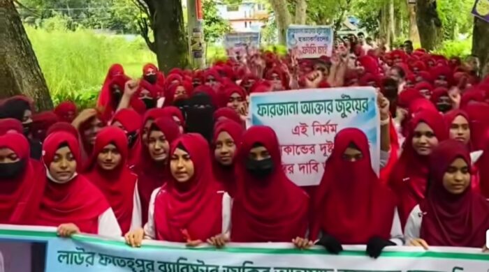 নবীনগরে কলেজছাত্রী জুঁই হত্যার প্রতিবাদে কলেজের সহপাঠীদের মানববন্ধন মোঃ খলিলুর রহমান খলিলঃআজ ২৫ সেপ্টেম্বর বৃহস্পতিবার সকালে ব্যারিস্টার জাকির আহমেদ কলেজ প্রাঙ্গণে হাজারো শিক্ষার্থীদের অংশগ্রহনে জুই হত্যার বিচারের দাবিতে মানববন্ধন অনুষ্ঠিত