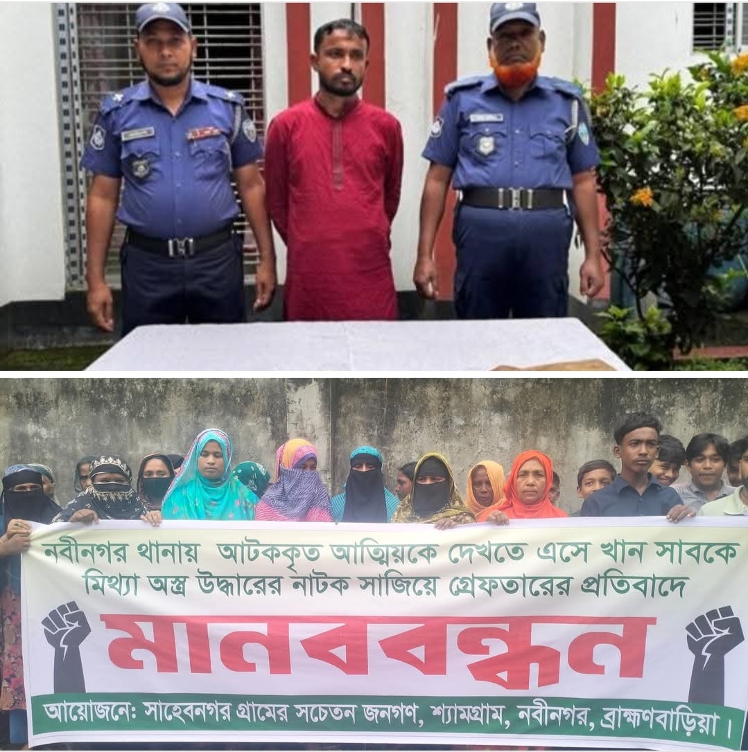 নবীনগরে বিশেষ অভিযানে অবৈধ বন্দুকসহ যুবক আটক,নির্দোষ দাবি করে গ্রামবাসীর মানববন্ধন