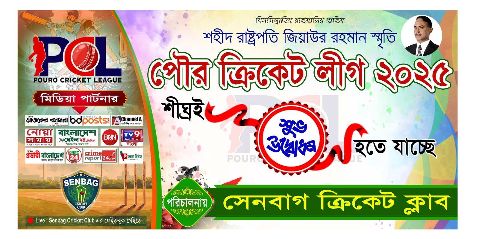 শীঘ্রই সেনবাগে শুরু হতে যাচ্ছে “শহীদ রাষ্ট্রপতি জিয়াউর রহমান স্মৃতি পৌর ক্রিকেট লীগ ২০২৫”