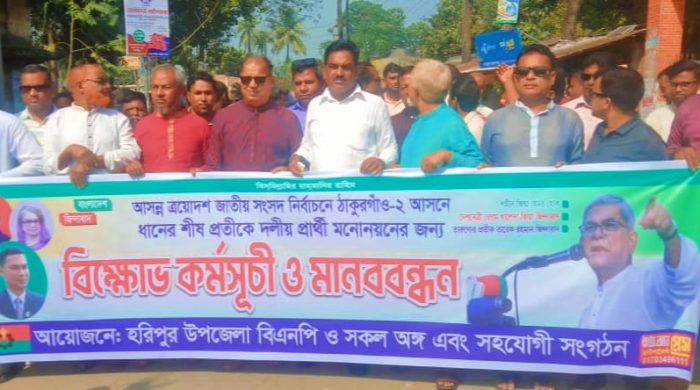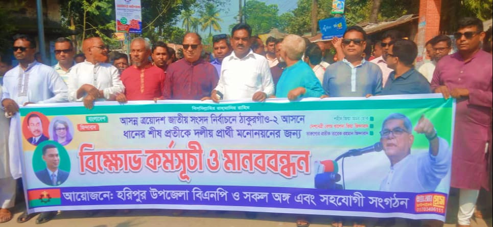 ঠাকুরগাঁও-২ আসনে ধানের শীষ প্রতিকে দলীয় মনোনয়ন চেয়ে হরিপুরে বিএনপির বিক্ষোভ মিছিল ও মানববন্ধ অনুষ্ঠিত